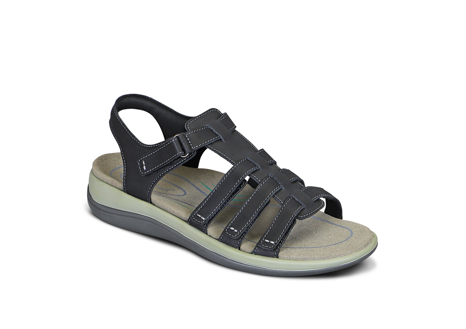 Feel invincible in our surefooted gladiator sandal and enjoy bioengineered walking comfort wherever you roam. Adjust the five padded leather straps for a fully custom fit that places the center strap comfortably atop your foot. Our ingenious inset strap can be adjusted and opened from both sides. so getting into these easy. even when bending over is difficult.