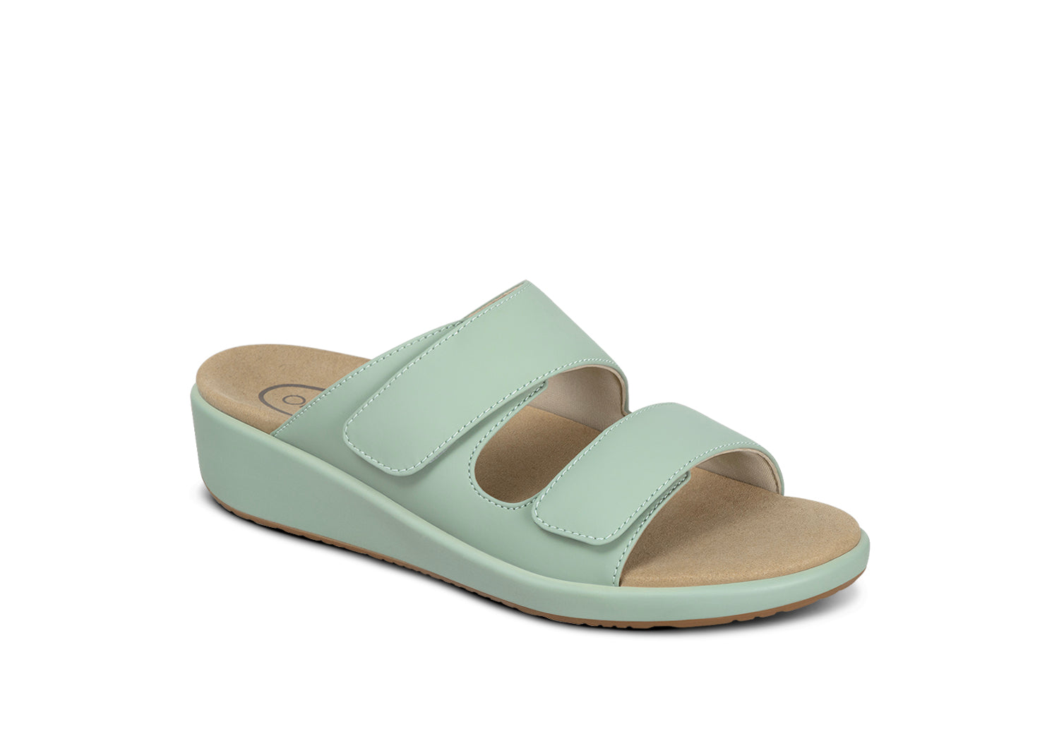As easy on the eyes as they are on every step you take: this beautiful wedge doesn't compromise your healthy comfort or body alignment. Soft and padded inside. the two pull straps adjust a perfect fit and can open completely. Enjoy everywhere you go. with advanced Ortho-Cushion™ System support underfoot to offload walking pressure and absorb impact.