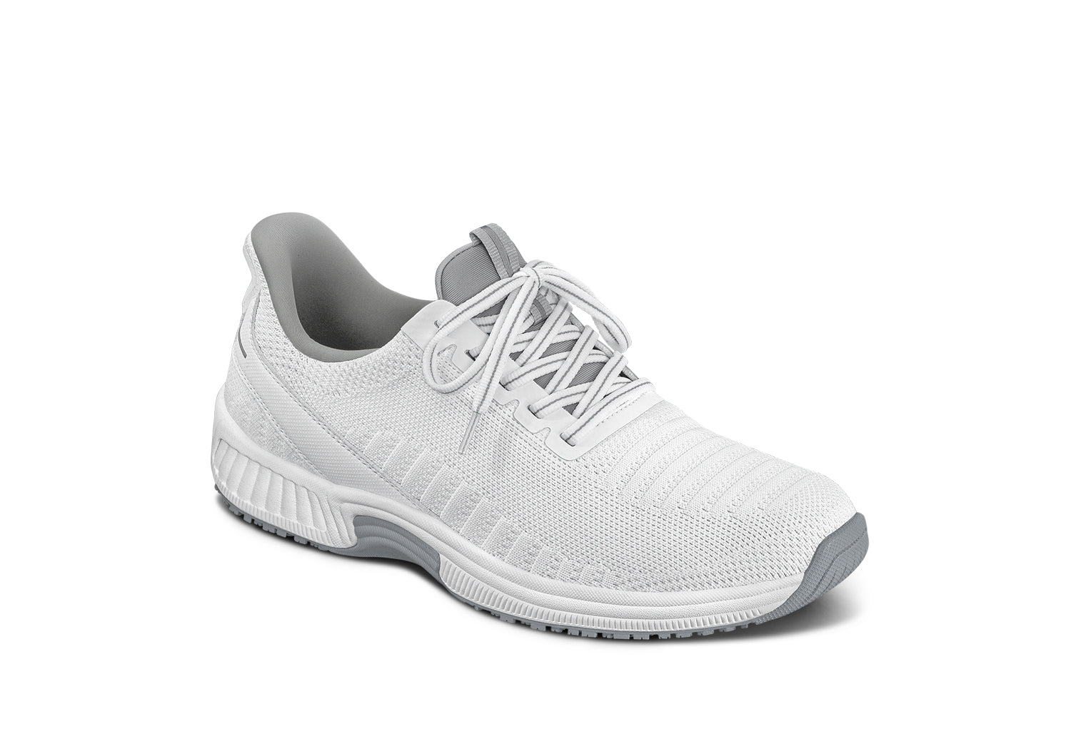 Kita's clean sporty design features our revolutionary hands-free slip-on technology. Tie the laces once. then never bend over to tie them again & just step in. without worrying about them slipping off when walking. From the water-repellant stretchable fabric uppers to the Ortho-Cushion™ System. Kita changes the game for mobility. support and comfort.