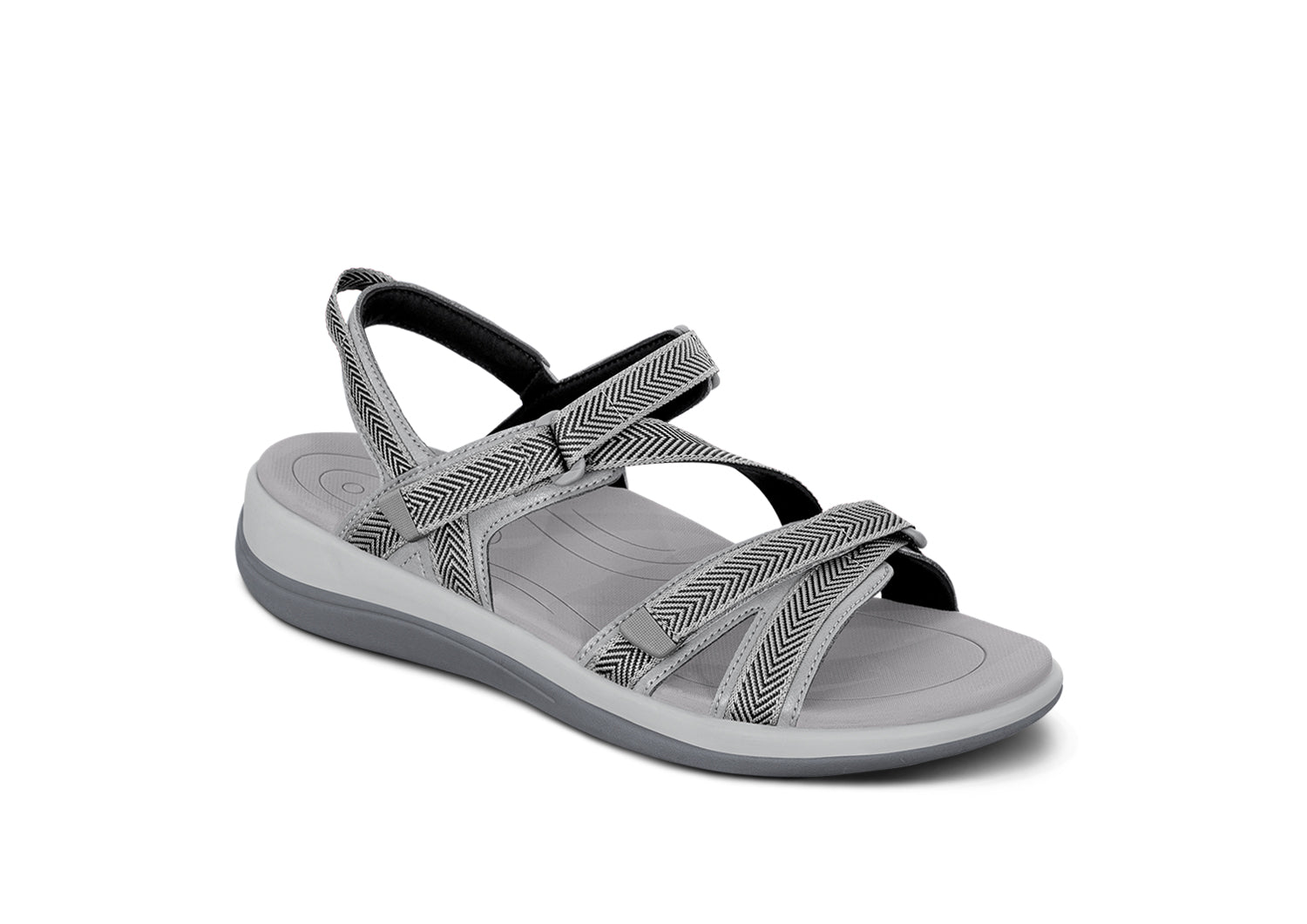 Keep every splash pain-free in these high-performance water friendly sandals. with three quick-dry. padded straps. The inset strap opens for easy on & off and adjusts on both sides. the forefoot strap adjusts too & for the perfect. secure fit. A grippy tread and supportive Ortho-Cushion™ System outsole protects every step and reduce walking impacts from heel to toe.