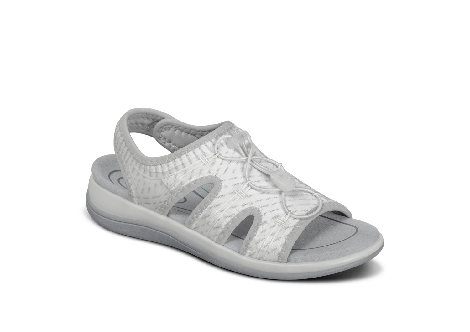 The easygoing style of this casual women's sandal makes it a little hard to believe how much support and walking comfort it provides. The stretchable. breathable fabric upper gently follows every shape of your foot with a bungee lace to set the perfect active fit. Open the padded heel strap. slide in and adjust. Now let the Ortho-Cushion™ System make every vista a pleasure to reach.