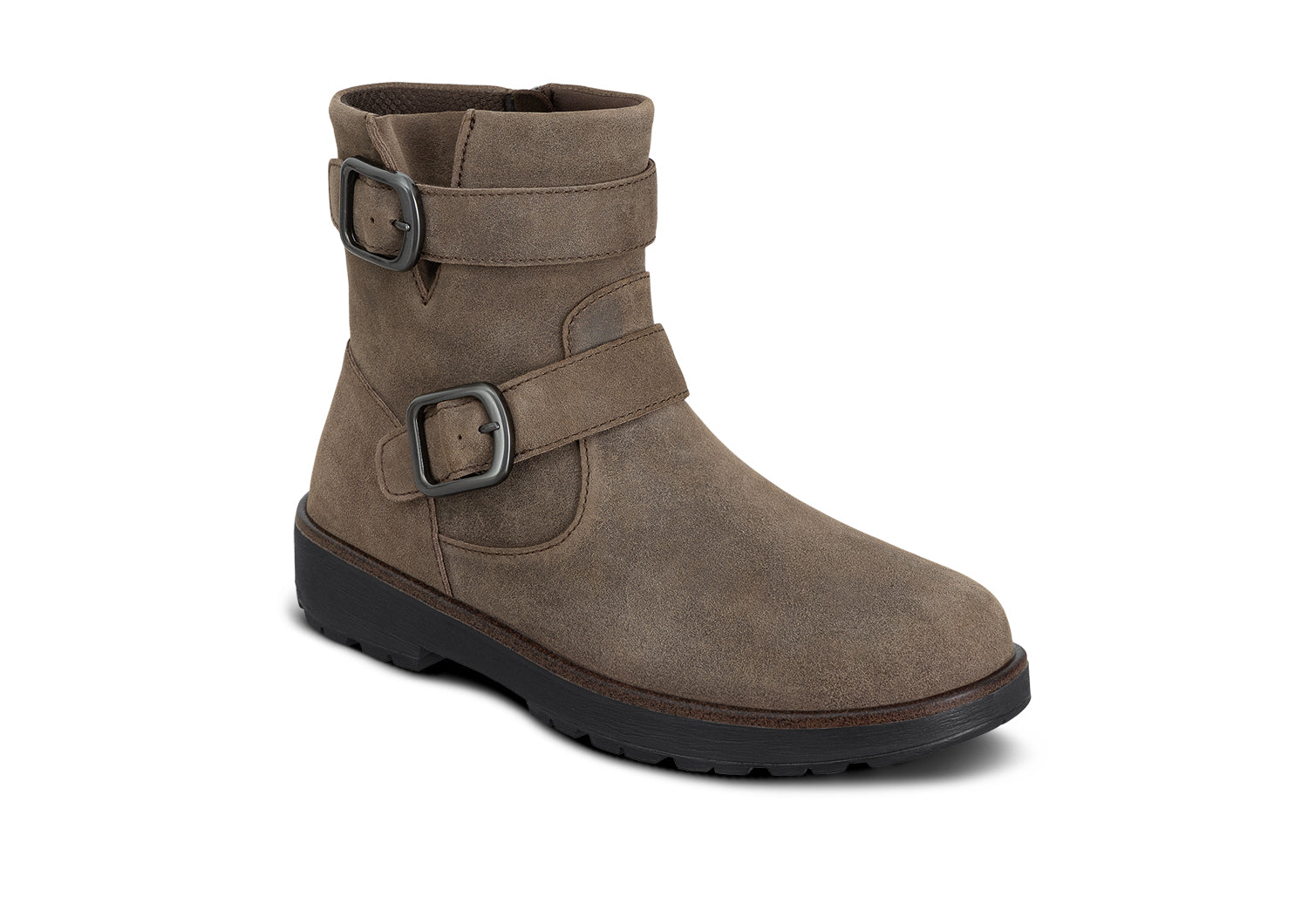 Shania brings classic style to your everyday adventures with its chic leather design and thoughtful comfort features. The sleek inside zipper lets you slip in with ease. while decorative buckles with hidden hook-and-loop adjustability create the perfect fit around your calves. This versatile mid-rise boot transitions beautifully from coffee dates to weekend strolls. wrapping your feet in soft. protective comfort. With Shania. you'll feel confident and supported wherever the day takes you – because looking great should always feel this good.